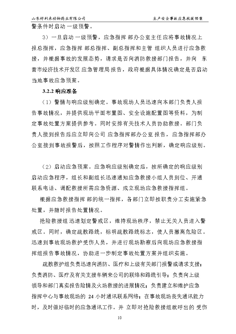 山东好利来动物药业有限公司生产安全事故应急预案(点击查看详细文档)